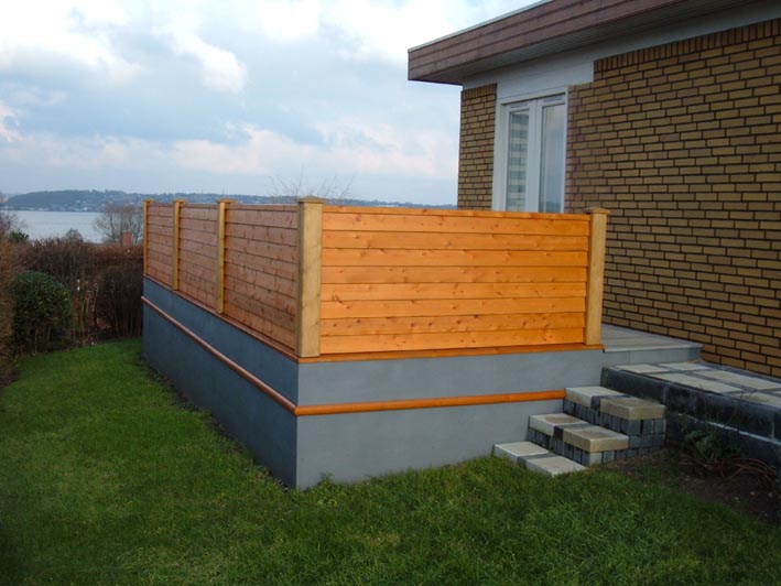 Afskærmning med klink profil omkring terasse.